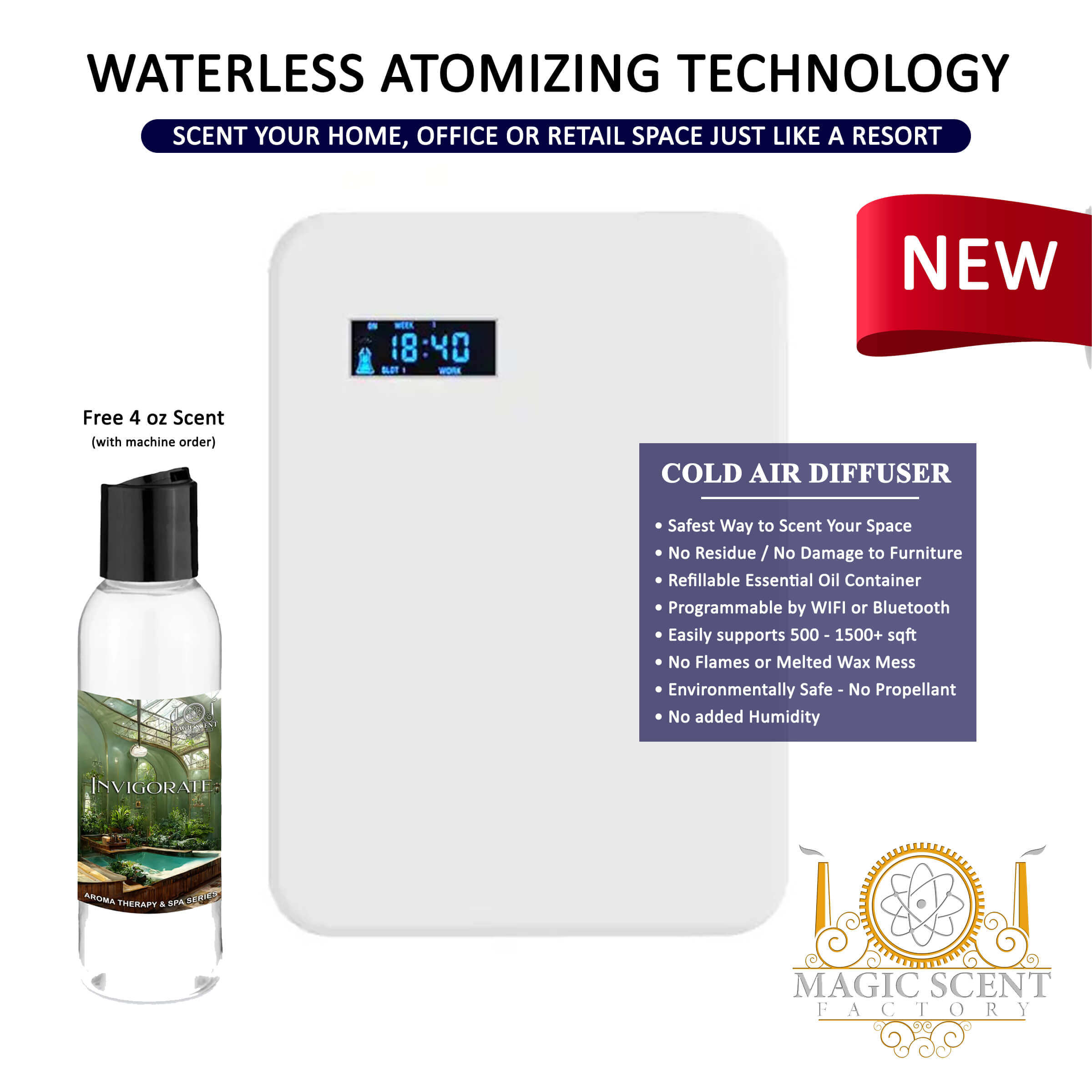 Same technology as the Big Resorts. Free 4 oz Scent With the Purchase of a Diffuser – choose your favorite.