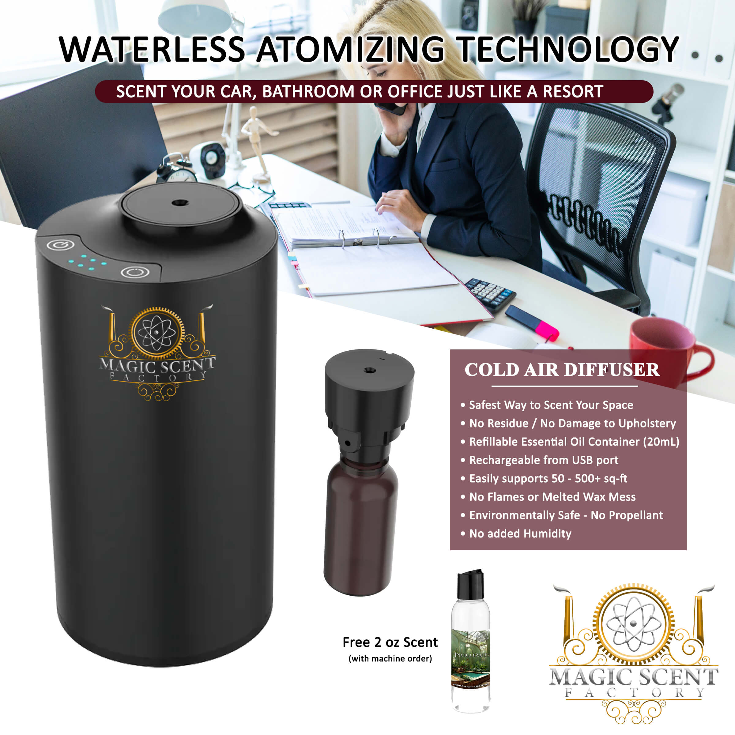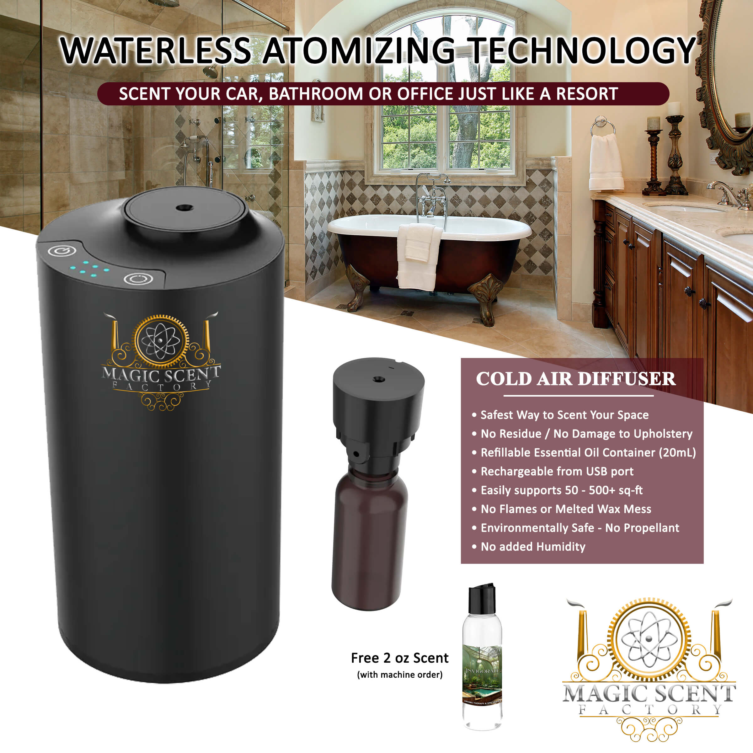 Smart Waterless Atomizing Scent Diffuser – Car / Bathroom Unit